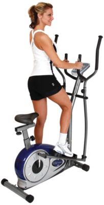 Vary your exercise regimen by choosing elliptical or exercise bike Patented 2-in-1 design enhances cardio health Features a programmable LCD console that allows you to set up to 20 programs Programs include workout programs, heart rate-driven programs, and user customizable programs Adjustable seat moves vertically or horizontally to accommodate all sizes of user Operates with motor-driven, magnetic, adjustable resistance system Durable steel frame construction Some assembly required Manufacturer's warranty included: see complete details in the Product Guarantee area About Body Champ Incorporated since 1993, Body Champ has spent over 15 years establishing itself as a leader in the field of health and wellness. Endorsed by the average user and even professional athletes, Body Champ provides relief and support in a world that's rough on us. Offering fitness equipment from treadmills to exercise bikes and wellness equipment from massage chairs to inversion tables, Body Champ has you covered. Because our health is all we have! Functions as elliptical or exercise bike 13-inch stride length/16 resistance levels/20 programs Includes workout DVD 250-pound weight capacity Assembled dimensions: 38.63L x 12.63W x 63H inches Manufacturer's warranty included (see product guarantee)
